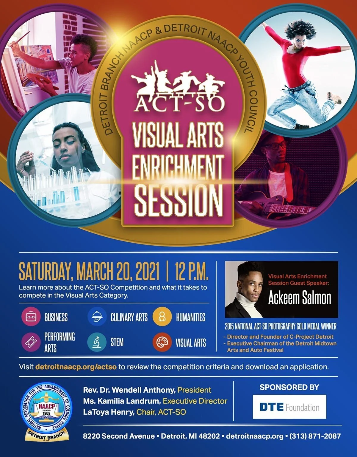 ACT-SO VISUAL ARTS ENRICHMENT SESSION Mar 15 Written By LaToya Henry CLICK HERE TO REGISTER ACTSOVisual ArtsDrawingFilmmakingPaintingPhotographySculpture LaToya Henry